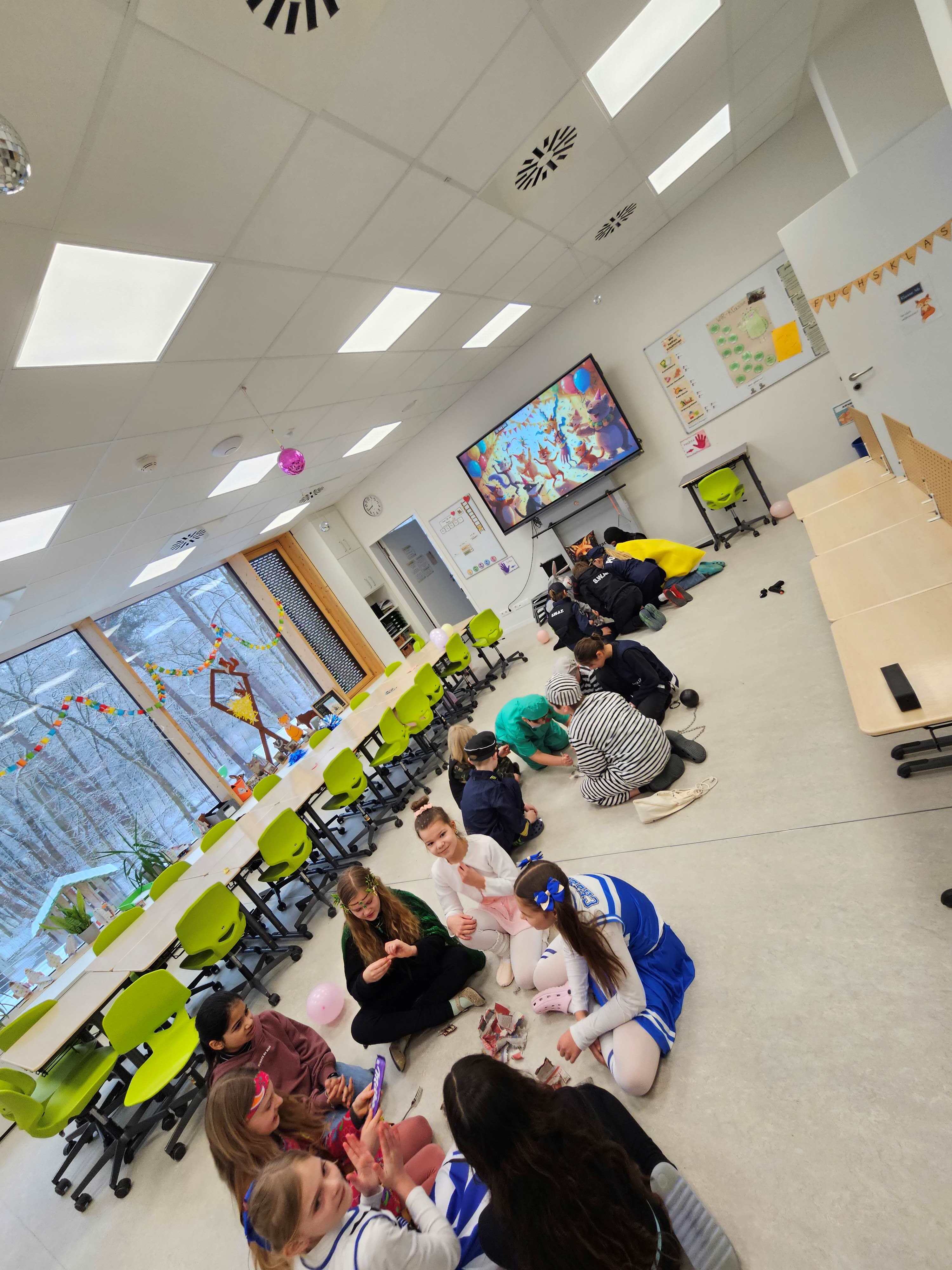 Gemeinsam hörten die Kinder Karnevalsmusik, tanzten und hatten jede Menge Spaß. Ein besonderes Highlight war die große Polonaise, die durch die ganze Schule und sogar durch den Kindergarten führte. Dabei zogen alle fröhlich durch die Flure und verbreiteten überall gute Laune.