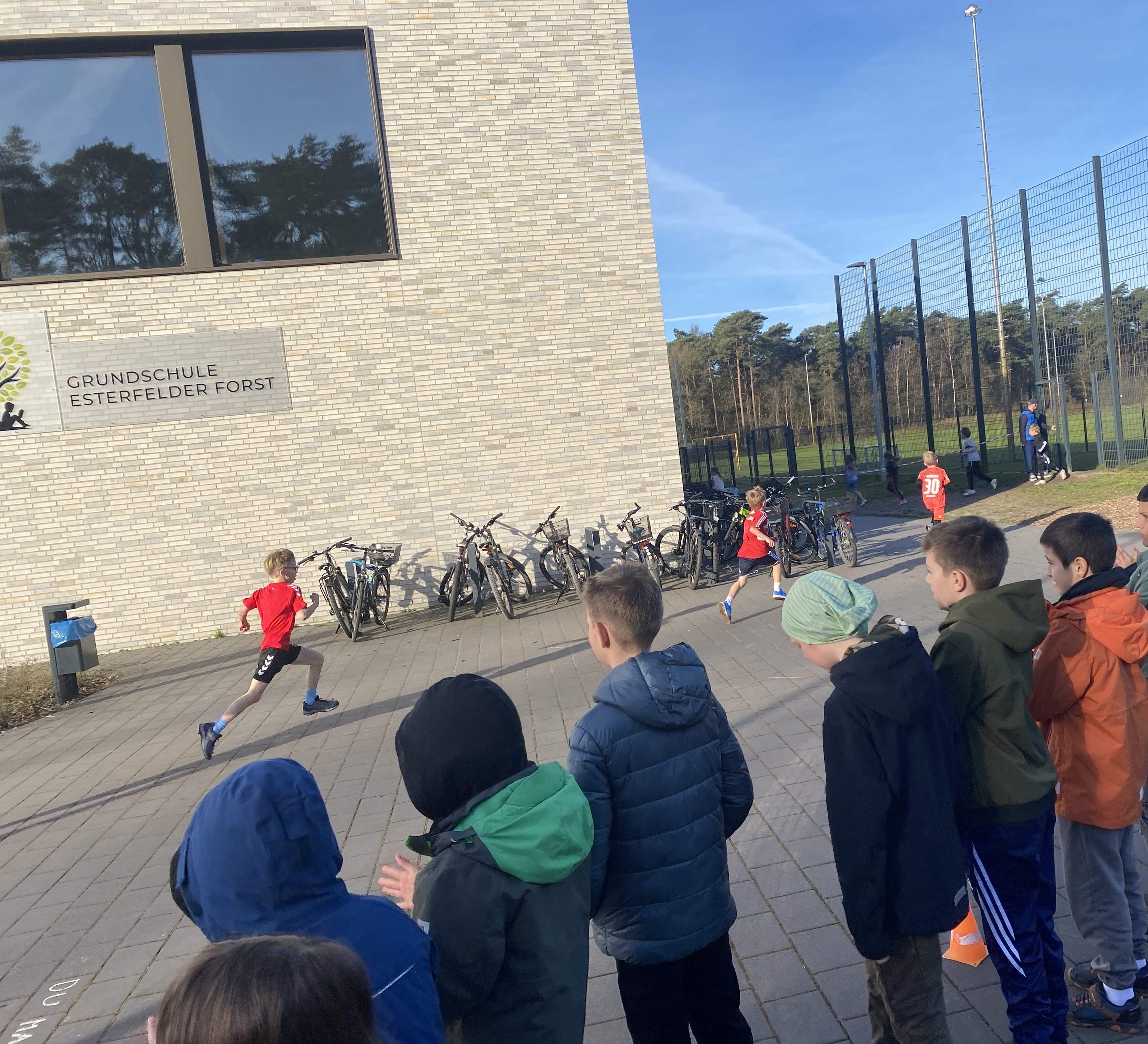Als Sponsoren fungierten Eltern, Freunde, Familienmitglieder und Bekannte der Schüler und Schülerinnen, die im Vorfeld eine feste Spende oder einen Betrag pro Runde festgelegt hatten. Die Strecke verlief rund um unser Schulgebäude: über den angrenzenden Bolzplatz und Schulhof sowie durch das Schulgebäude. In jeder Schulstunde lief ein Jahrgang, welcher von den anderen Jahrgänge an der Strecke lautstark unterstützt wurde!